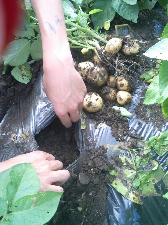 今日は、2年物のにんにくと新じゃが、小松菜、