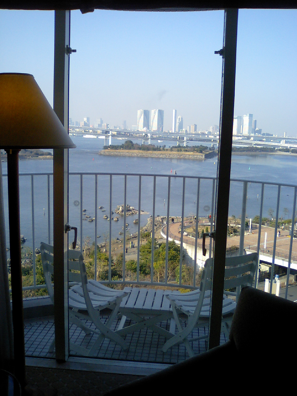 先にはフジテレビとその横に本日宿泊先ホテル日航東京