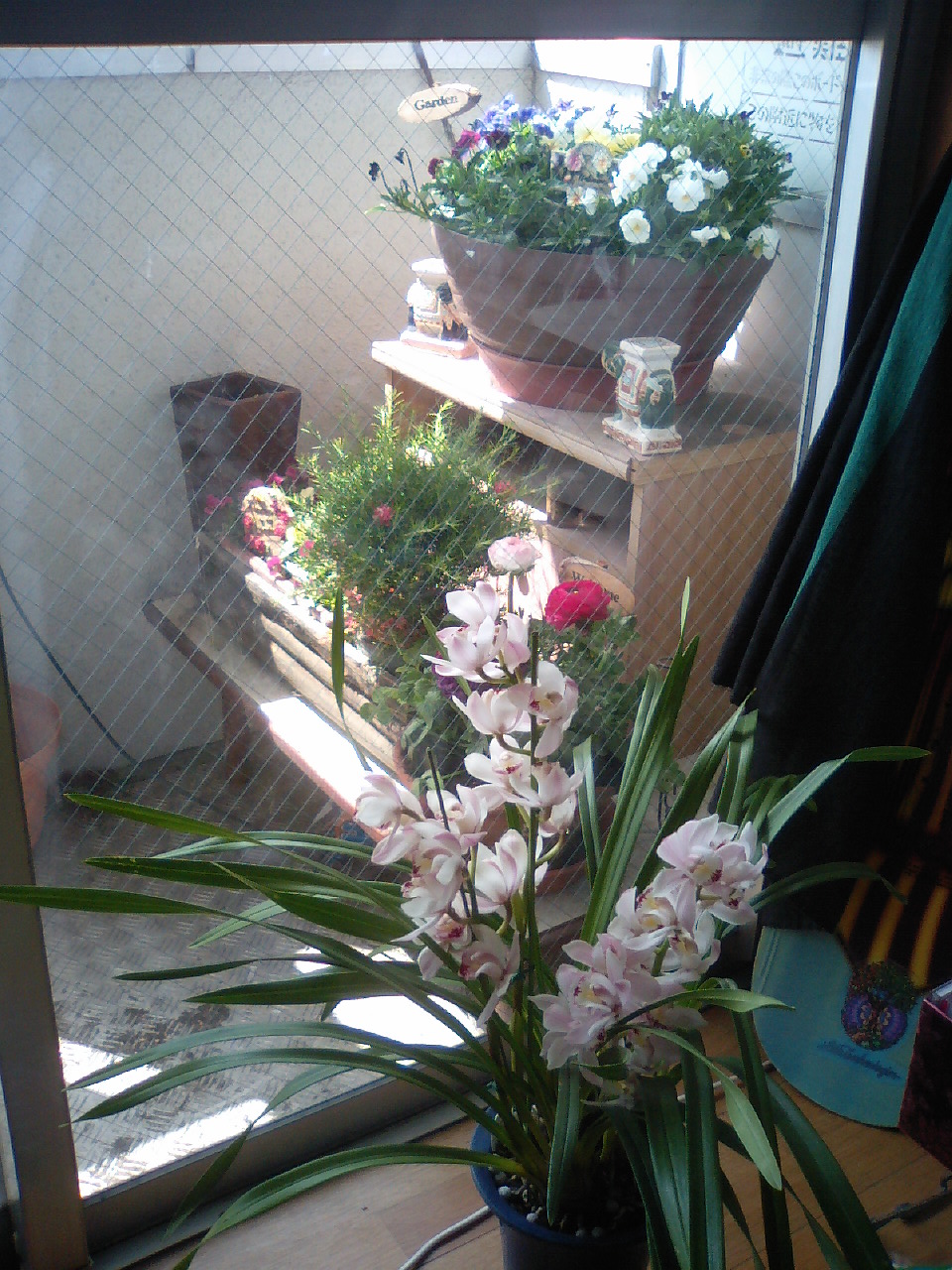 手前のシンビジウムとベランダのお花さんたち